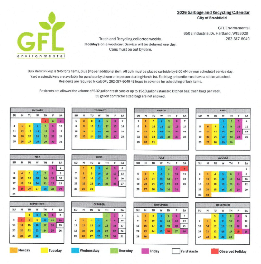 GFL is proud to service the residents of Brookfield and meet your trash and recycling needs. More information on our services in your community is listed below.