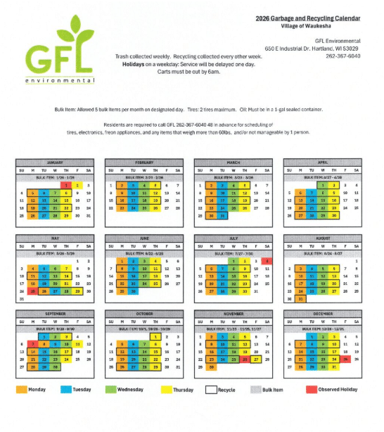 GFL is proud to service the residents of the Village of Waukesha and meet your trash and recycling needs. More information on our services in your community is listed below.