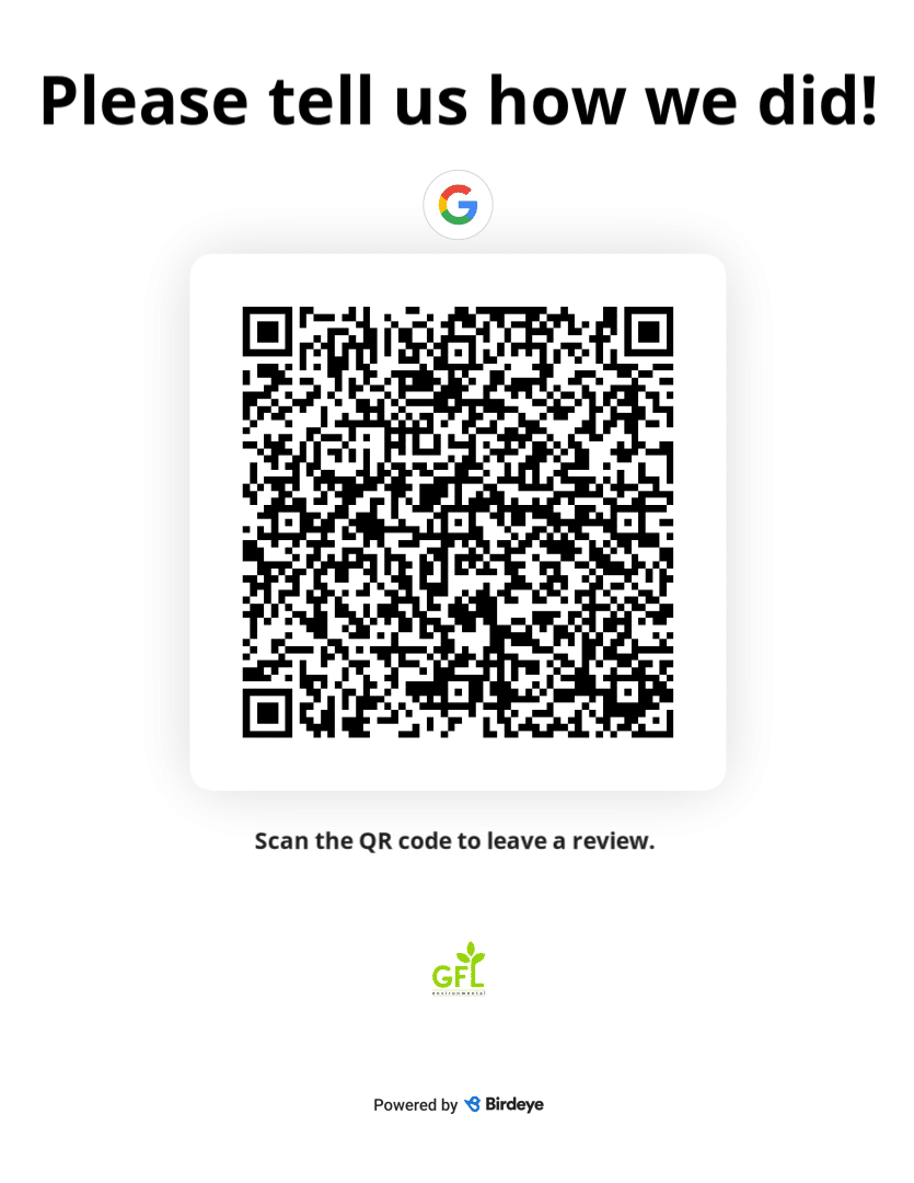 We here at GFL take pride in our service. Leaving a review with the QR code below, or at this LINK, is a great way showing us how we performed.